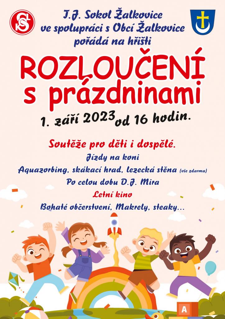 TJ SOKOL ŽALKOVICE ve spolupráci s obcí Žalkovice Vás zvou na ROZLOUČENÍ S PRÁZDNINAMI. V pátek 1. září od 16:00 hodin na hřišti.